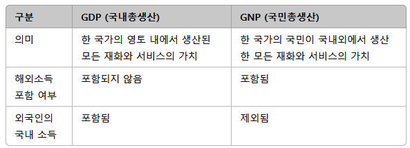 즉, GNP는 국내외에서 국민이 벌어들인 모든 소득을 포함하는 개념입니다.