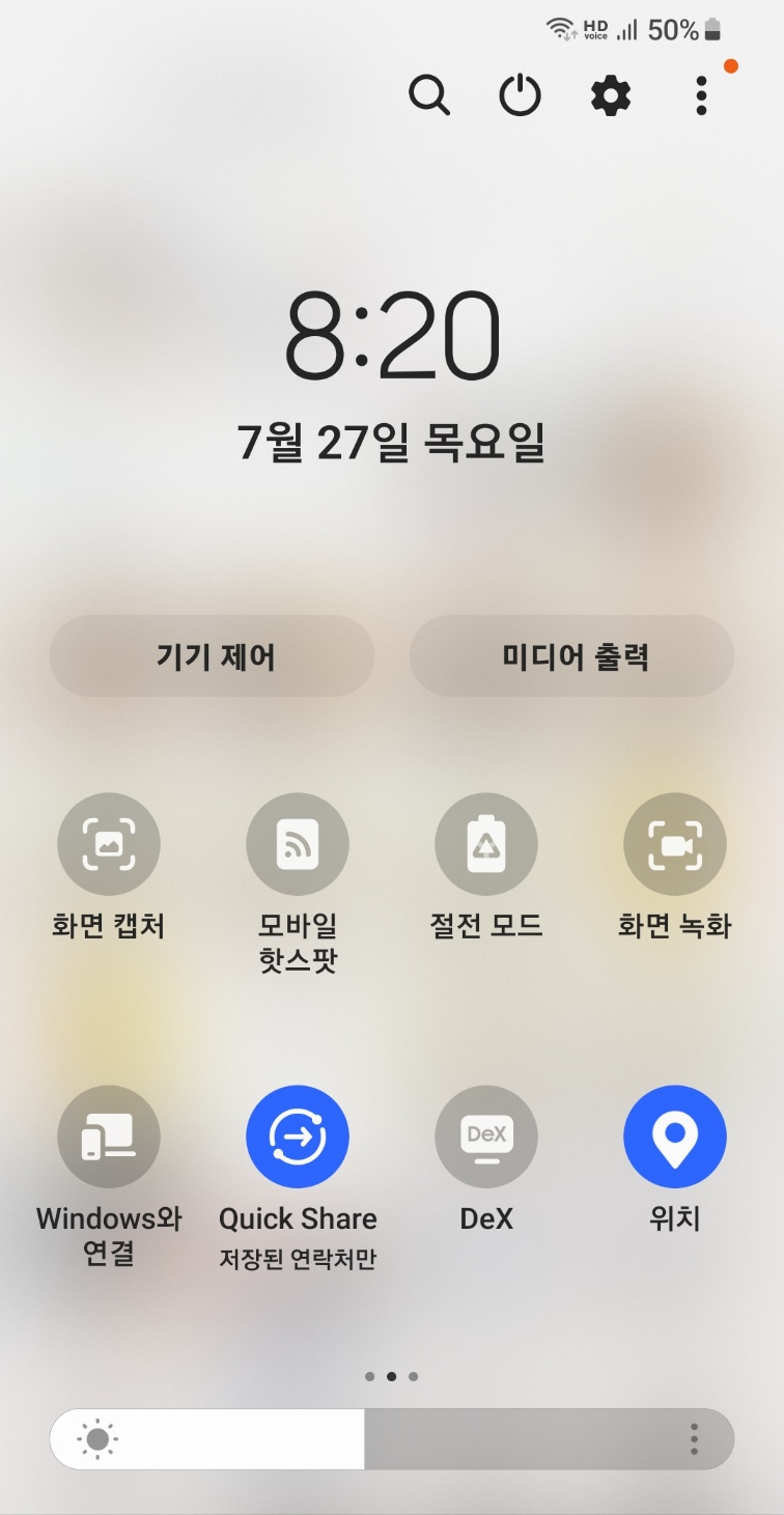 - 화면 상단에서 아래로 스크롤하여 빠른 설정 패널을 엽니다.