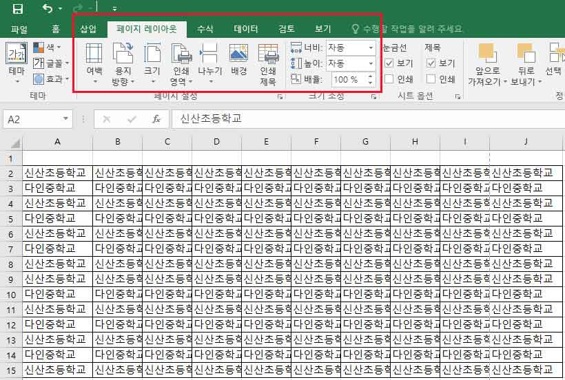 1. 자동 맞춤 기능 사용 페이지 레이아웃 탭으로 이동합니다.