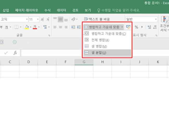 엑셀에서 셀 나누기를 하려면 먼저 셀을 병합해야 합니다. 다음은 셀 나누기 단계입니다.