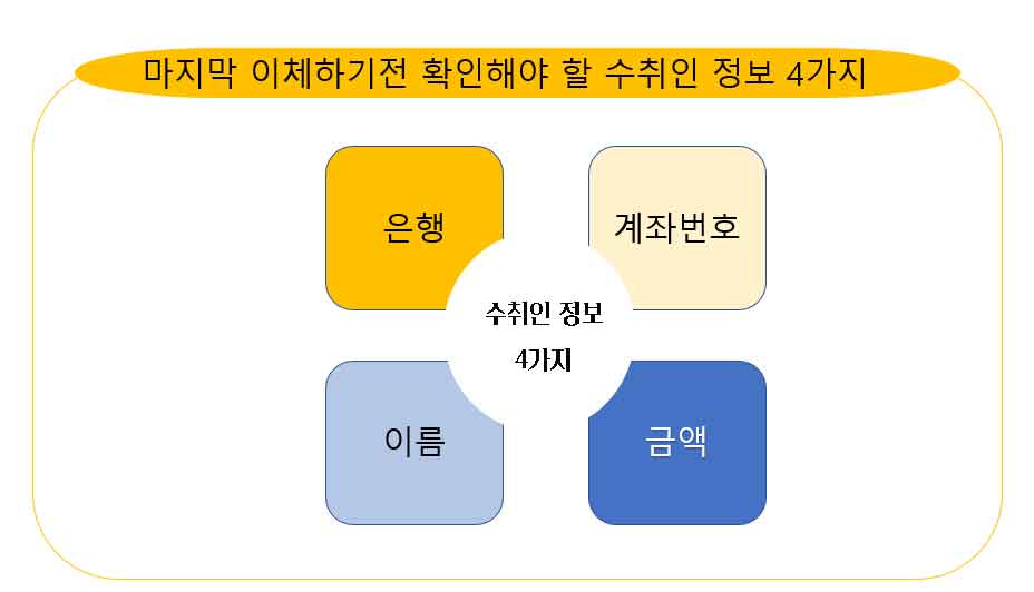 수취인 이름과 수취인 계좌번호, 금액 다시 확인 하는 습관을 들이세요.