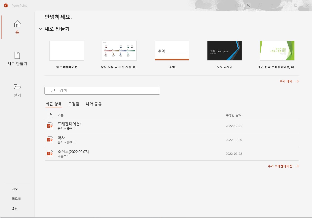 Q. 파워포인트에서 프레젠테이션을 만들고 싶습니다.