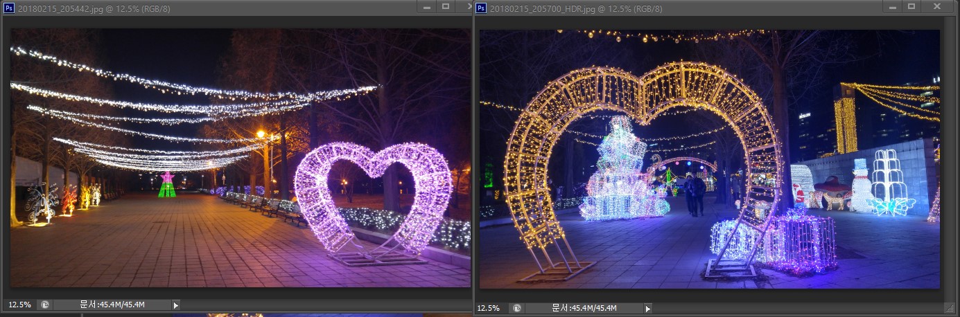 - 두 개의 이미지를 포토샵으로 불러옵니다.