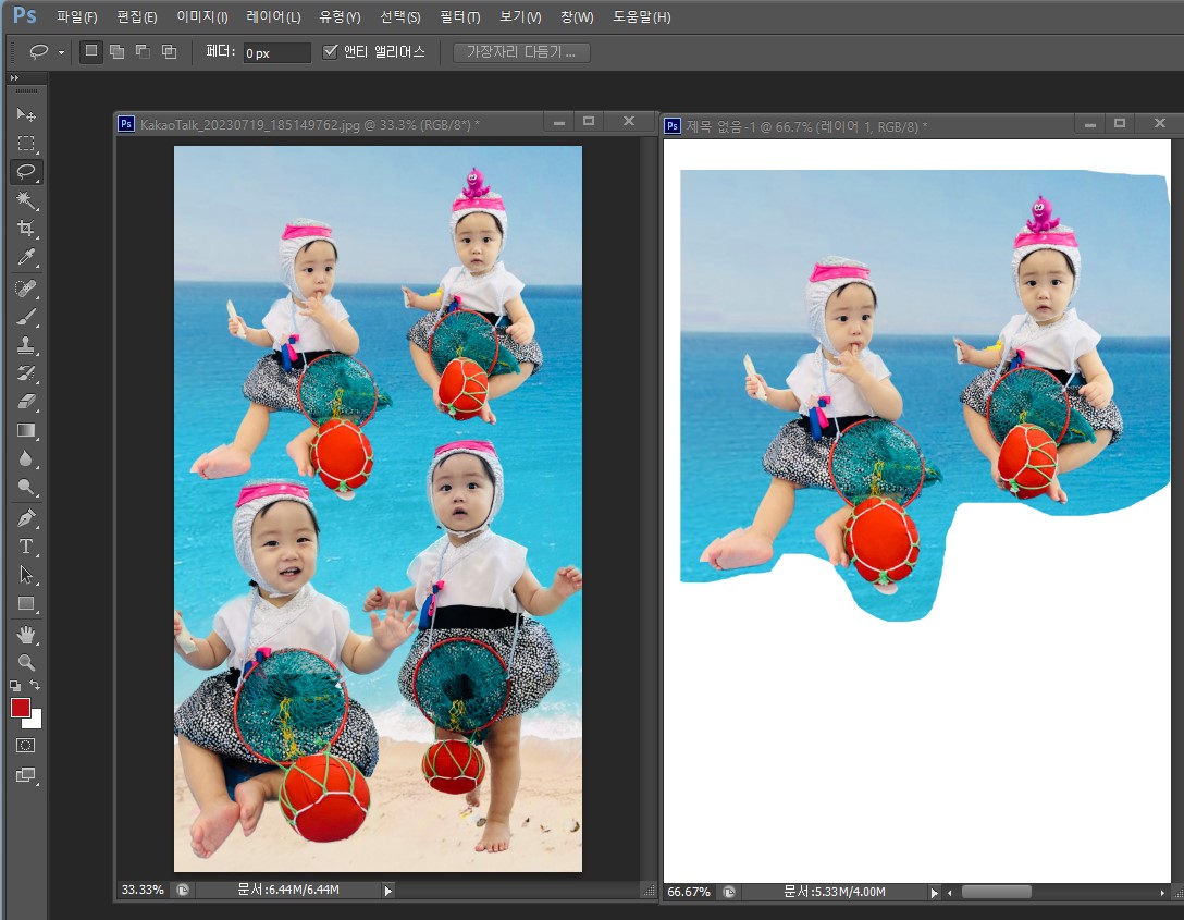 포토샵에서 필요한 부부만 오려내는 선택도구를 활용하여 이미지를 수정하는 방법