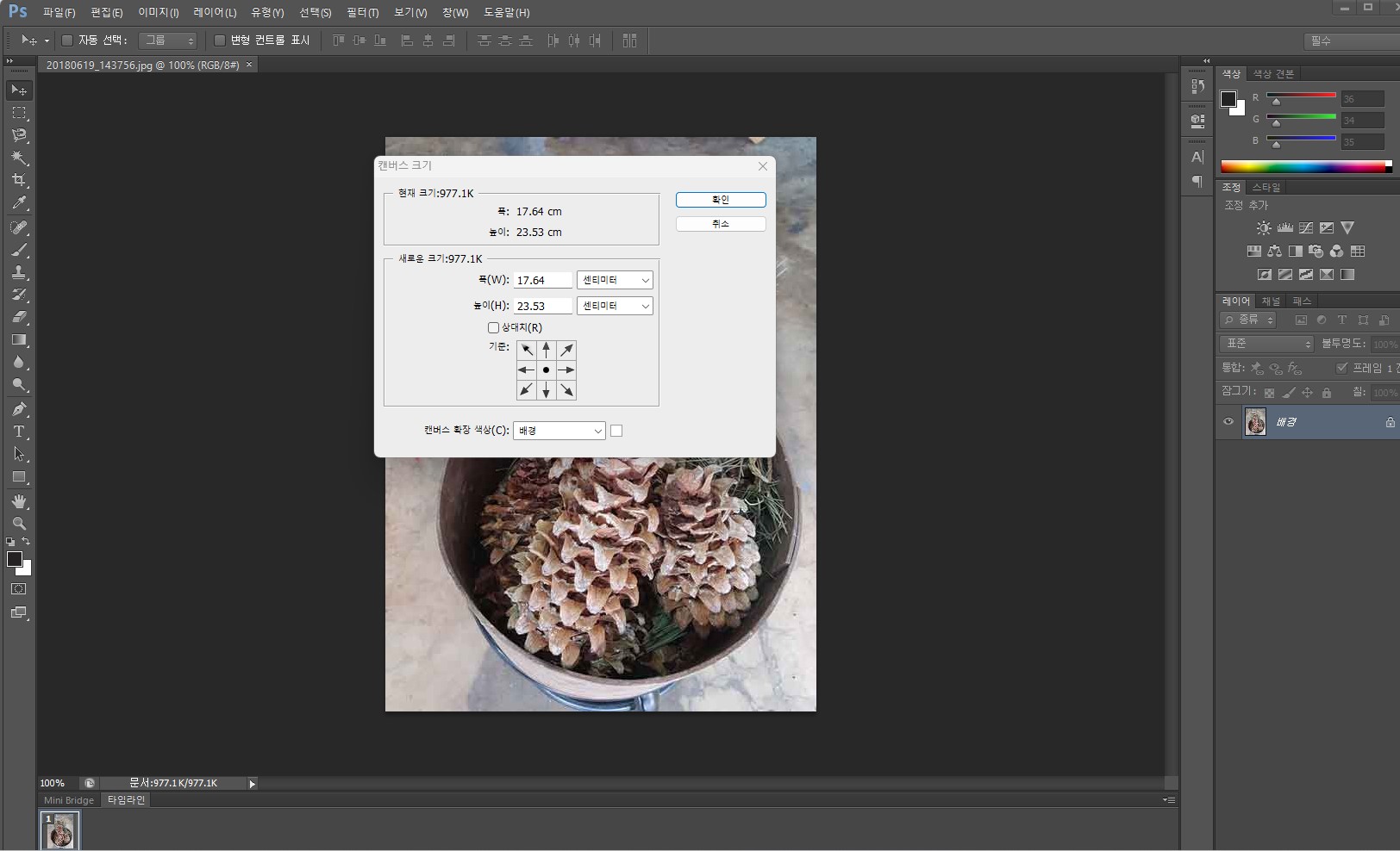 포토샵에서 캔버스 사이즈 조절하는 방법을