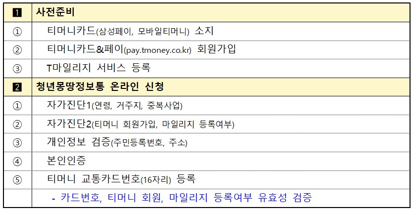지원내용 : 교통마일리지 지금 + 청년대상 정책정보 제공